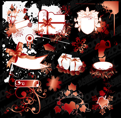 eps format, keyword: vector material, pattern, the pattern of practical, stylish patterns, and the tide patterns, snowflakes, bows, gift, shields and the ink, plants