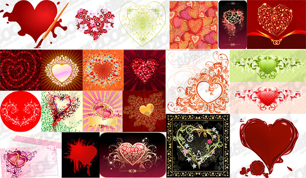 eps format, with jpg preview, the crucial words: Vector heart-shaped, love, love, patterns, ink, brushes, backgrounds, flowers, vector material