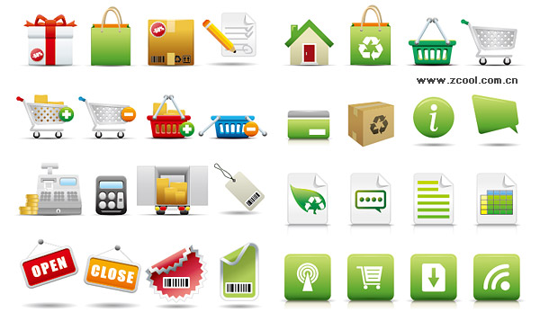 eps format, including jpg preview, keyword: vector icons, web design, before shopping, gifts, shopping bags, price, cardboard boxes, pencils, shopping cart, shopping basket, cash register, calculator, trucks, tag, tag, open, close, angle, roll angle, house, environmental protection,signal, vector material