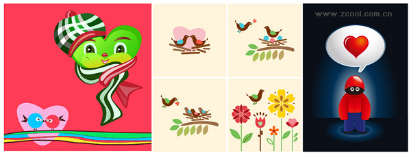 eps format, including jpg preview, keyword: vector cute, cartoon, bird, heart-shaped, hats, flowers, love, vector material