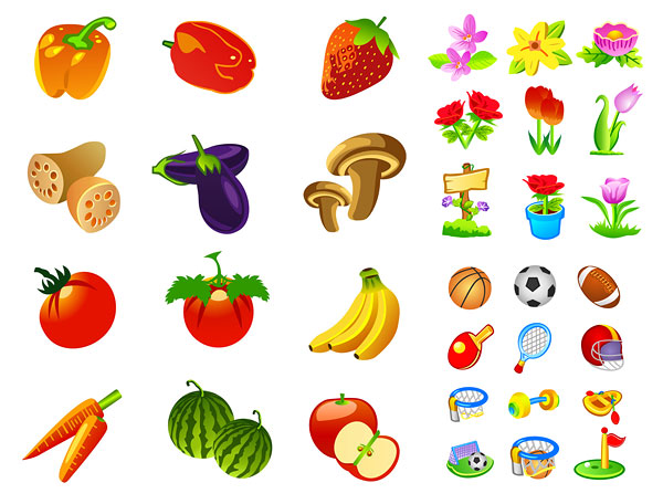 Fruit and vegetables keyword material strawberry flower lotus lanterns eggplant chili pepper mushrooms carrot tomato watermelon banana carrot flowers tulip roses Apple bulletin board sports equipment table tennis basketball soccer football tennis basketball lovely golf gantry frame sports dumbbell vector material